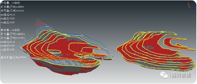 利用3D可视化技术构建爆堆品位数据库,实现爆堆数据的可视化管理,通过爆堆数据与地质数据的数据融合,利用高精度定位技术实时动态获取电铲或挖掘机出矿品位,实现电铲出矿品位的动态跟踪;根据多金属多目标智能配矿模型自动生成最优配矿计划,确保入选品位稳定均衡。